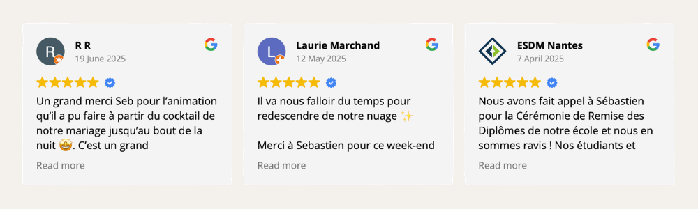 Je ne m'impose pas. Je lis la salle, j'adapte l'énergie au fil de la soirée. Avec discrétion, je me fonds dans votre événement pour que chaque instant se passe exactement comme vous l'aviez imaginé.
