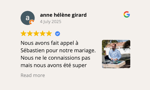 Du cocktail jusqu’à la dernière danse, je vous accompagne à chaque étape de votre mariage pour créer une ambiance musicale en parfaite harmonie avec vos envies et vos invités.!